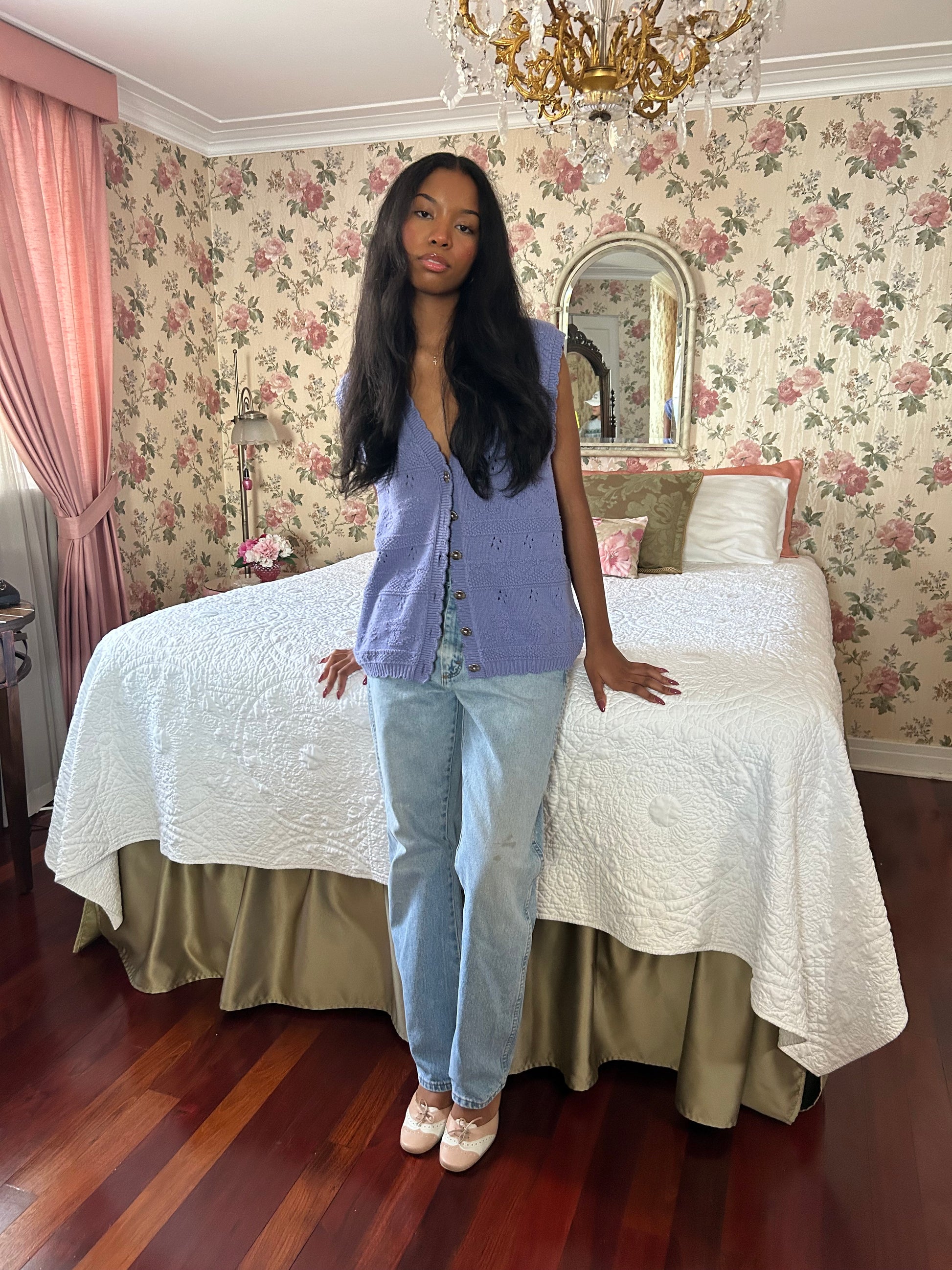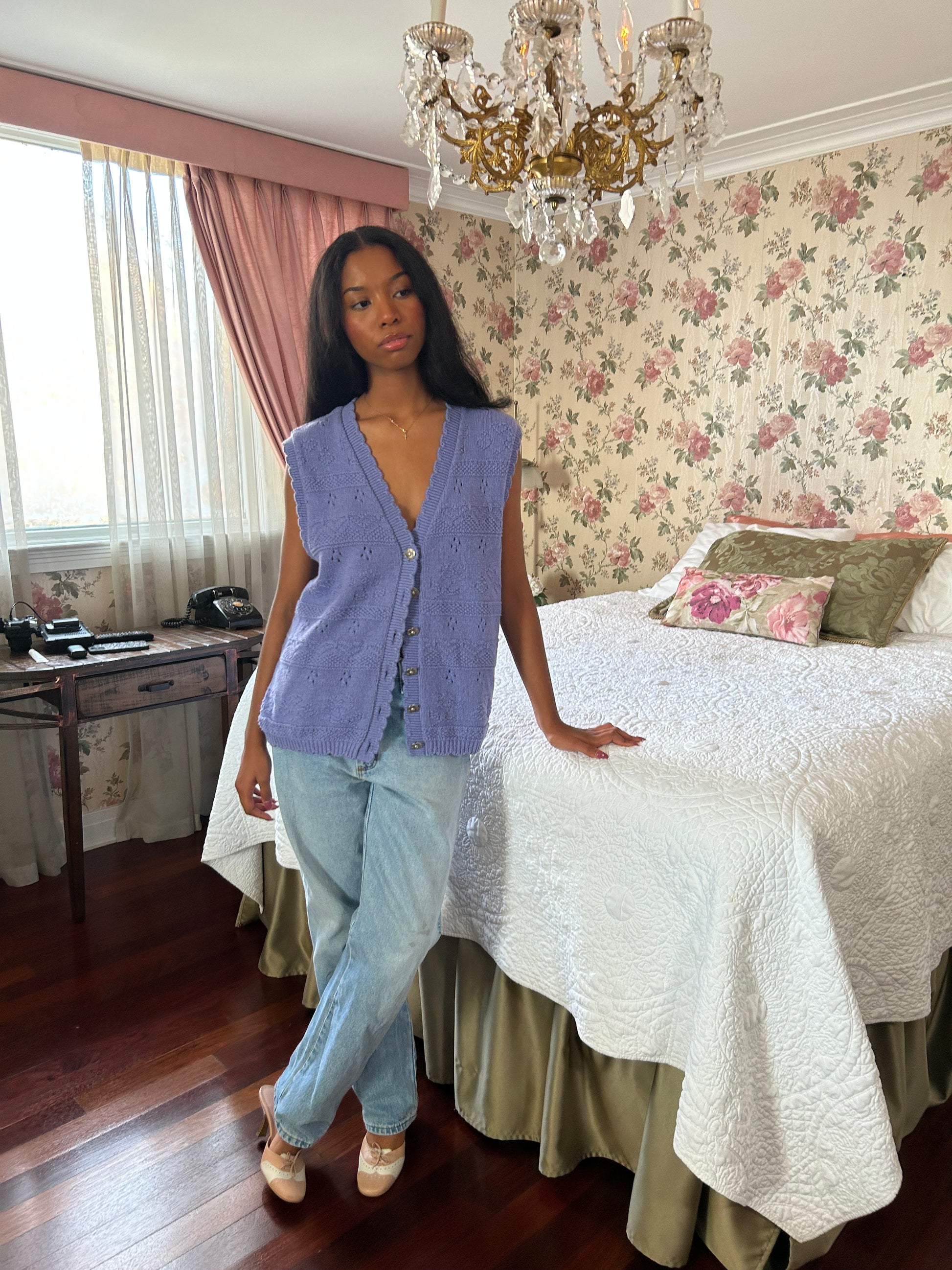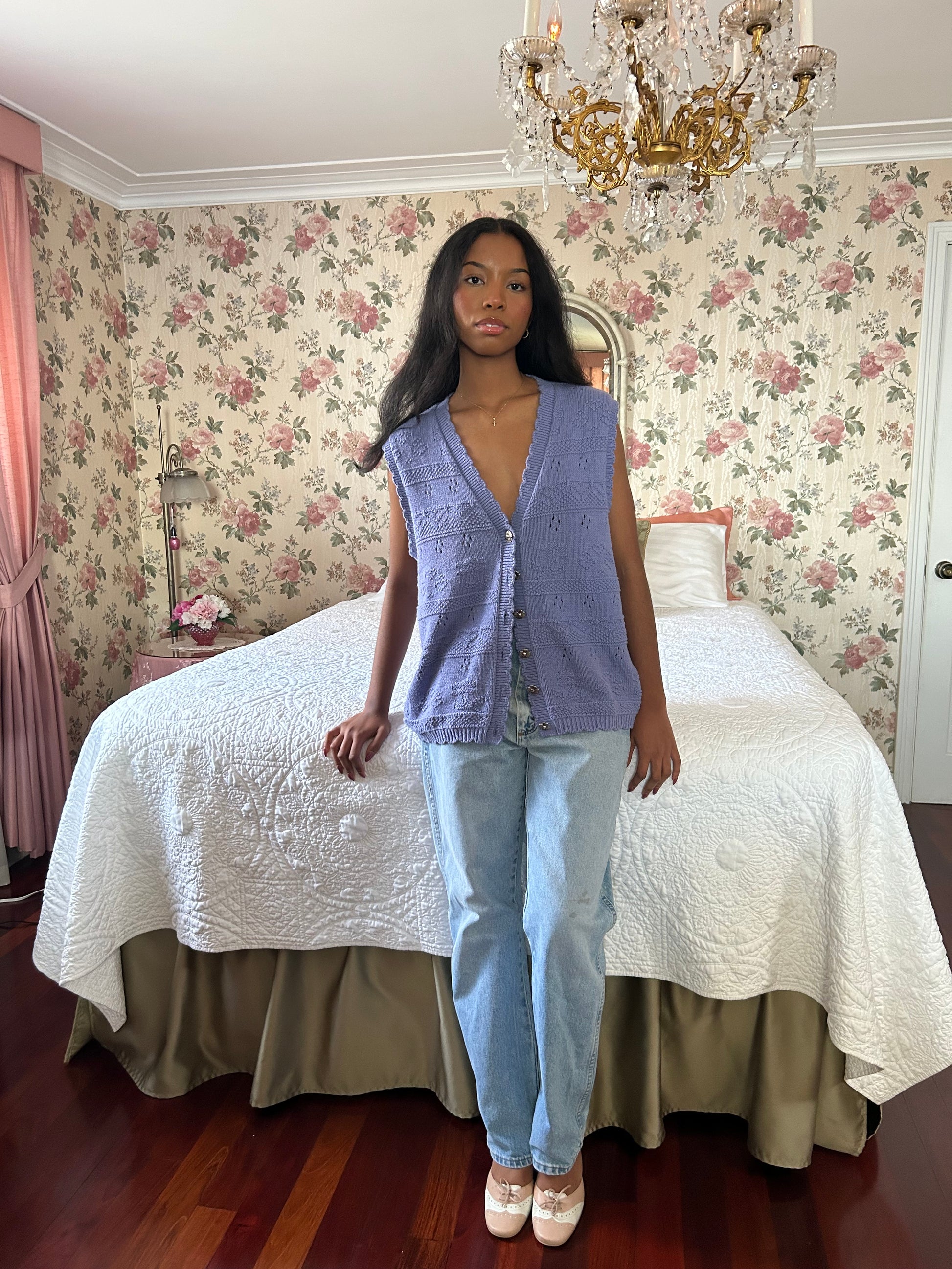 Sweetest knit vest with flower buttons